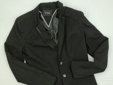 Ten damski blazer w kolorze czarnym, marki Orsay, wyróżnia się krótkimi rękawami oraz zapinaniem na pojedynczy guzik. Posiada klapy oraz dwie praktyczne kieszenie z przodu. Idealny do stworzenia el...