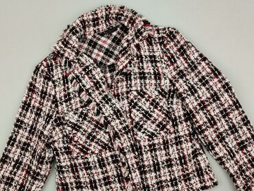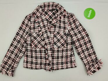 Marynarka damska J by C - Rozmiar z metki: 40 - Krój: dwurzędowy, lekko taliowany, z szerokimi klapami - Wzór: krata w odcieniach szarości, czerni, bieli i jasnego niebieskiego - Rękawy: 3/4 z pat...