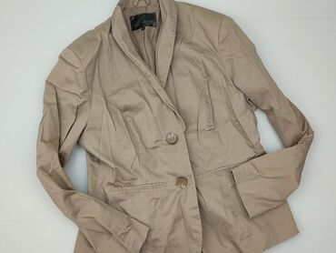 Damska marynarka w kolorze beżowym - Fason: taliowany, jednorzędowy - Zapięcie: 2 guziki z przodu - Kołnierz: klasyczne, szerokie klapy - Kieszenie: dwie naszywane z patkami z przodu - Rękawy: dłu...