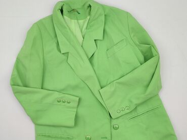 Żakiet damski w intensywnym, limonkowo‑zielonym kolorze. - Fason: dłuższy, bez zapięcia, z otwartymi klapami; lekko taliowany tył, rozcięcie z tyłu dla swobody ruchów - Rękawy: 3/4 z podwinięciem ...Stan: