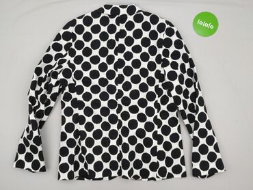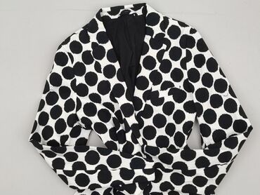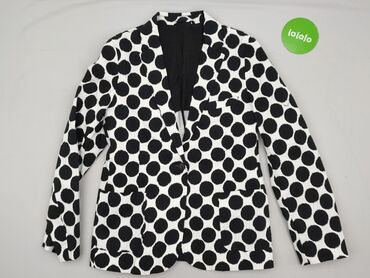 Żakiet damski w biało‑czarny wzór - Krój: klasyczny żakiet z kołnierzem z klapami - Zapięcie: na guziki z przodu - Rękawy: długie - Talia: delikatnie wcięta, podkreślająca sylwetkę - Długość: do b...Stan: