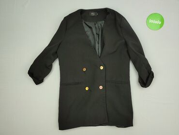 Damska marynarka/blazer w kolorze czarnym. - Fason: taliowany, zapinany na 2 guziki z przodu - Kołnierz: klasyczne, szerokie klapy - Rękawy: długie - Kieszenie: dwie przednie z patkami (dekoracyjn...
