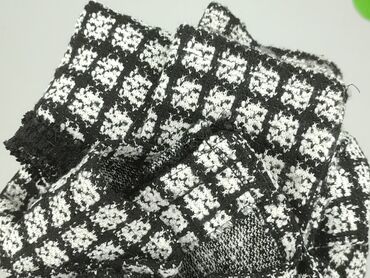 - Tkanina o fakturze tweed/bouclé, przyjemnie miękka, z delikatnie strzępionym wykończeniem krawędzi