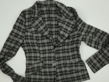 Marynarka damska w kratkę - Fason: klasyczny, lekko taliowany, długość do bioder - Zapięcie: trzy metalowe guziki z przodu - Kołnierz: z klapami - Kieszenie: dwie naszywane z przodu - Podszewka: c...