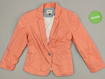 Żakiet damski w kolorze koralowym - Krój: taliowany, jednorzędowy na jeden ozdobny guzik - Kołnierz: klasyczne, wąskie klapy - Zapięcia: centralny guzik + dwie kieszenie z przodu zapinane na zamki...