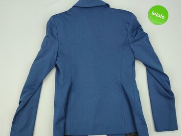 Żakiet damski RESERVED - Kolor: granatowy - Rozmiar z metki: EUR 36 (UK 8) - Krój: bez zapięcia, lekko taliowany, z modelującymi przeszyciami - Rękawy: 3/4 z mankietem - Podszewka: tak - Skład tka...Stan: