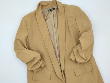 Damska marynarka/żakiet bez zapięcia – beżowy - Fason: lekko taliowany, bez klap, z zaokrąglonym dołem; otwarty przód wykończony ozdobnym, czarnym zamkiem na krawędzi - Rękawy: długie - Kieszenie:...