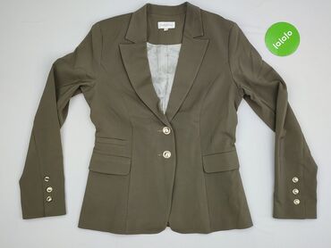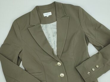 Damska marynarka/żakiet Meagraty Wear & County - Krój: taliowany, elegancki, inspirowany stylem country - Kolor: oliwkowa zieleń z ciemniejszą lamówką i stójką - Zapięcie: ozdobne guziki z przodu ...Stan: