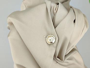 - Zapięcie: jeden złoty guzik z wypukłym motywem