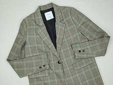 Szary damski żakiet Reserved, rozmiar 38 - Krój: klasyczny, jednorzędowy, zapinany na jeden guzik - Kołnierz: z klapami - Kolor: jasnoszary melanż - Materiał (wg metki): 76% poliester, 21% wiskoza...