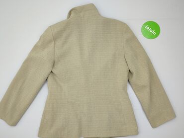 Żakiet damski Mardaw - Rozmiar z metki: 40 - Kolor: beżowy, subtelna, drobna faktura/żakardowe prążki - Krój: lekko taliowany, długość do bioder - Rękawy: 3/4 z mankietami - Kołnierz: szerokie kla...