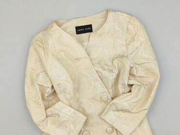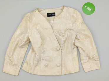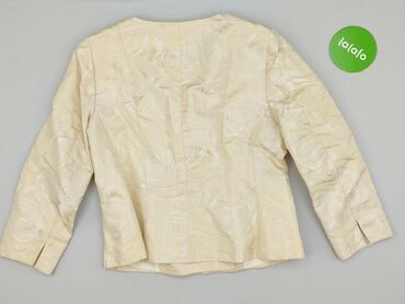 Żakiet damski Mardaw - Rozmiar z metki: 40 - Kolor: beżowy, subtelna, drobna faktura/żakardowe prążki - Krój: lekko taliowany, długość do bioder - Rękawy: 3/4 z mankietami - Kołnierz: szerokie kla...Stan: