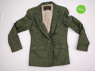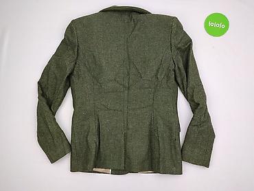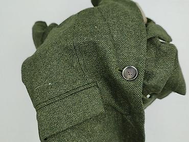 - Kolor i wzór: ciemna zieleń, deseń jodełka (tweedowy charakter)