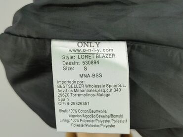 Żakiet damski ONLY - Model: ONLY (metka wewnętrzna) - Rozmiar: 36 - Kolor: niebieski, delikatny mikroprążek/mini paski na całej powierzchni - Fason: otwarty (bez zapięcia), lekko taliowany, ...