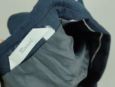 Granatowa marynarka damska Romel, wykonana z gładkiego materiału, posiada klasyczny fason z dwoma guzikami. Wyposażona jest w klapy, dwie kieszenie z przodu oraz jedną kieszeń na piersi. Rękawy marynarki mają ozdobne guziki na mankietach. Wewnętrzna podszewka zapewnia komfort noszenia. Idealna do stylizacji formalnych i półformalnych, zarówno na spotkania biznesowe, jak i uroczystości.