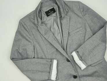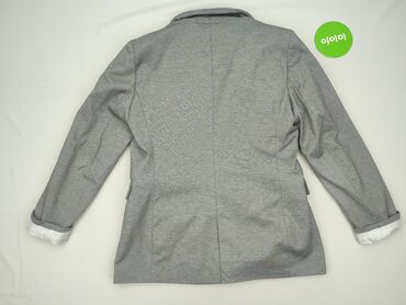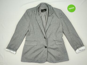 Szary damski żakiet Stradivarius - Marka: Stradivarius - Rozmiar z metki: S (EUR S / USA S / MEX 26) - Kolor: jasnoszary, delikatnie melanżowy - Krój: klasyczny, taliowany, z klapami - Zapięcie: n...