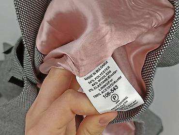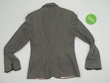 Elegancka, klasyczna marynarka idealna do biura i na formalne okazje; elastyczny dodatek w składzie zapewnia wygodę, a koronkowe detale dodają kobiecego charakteru. Dla kobiety. Używana, w stanie bardzo dobrym.