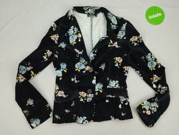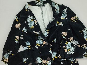 Kobiecy żakiet w kwiaty – Made in Italy - Wzór: gęsty, kolorowy print kwiatowy (róże, liście) na czarno-białym tle - Krój: taliowany, jednorzędowy na jeden guzik; klasyczne klapy; dłuższy kołnierz...