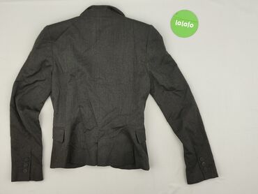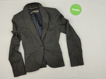 Żakiet damski Zara Basic - Marka: ZARA BASIC - Rozmiar z metki: XS (EUR XS / USA XS / MEX 24) - Kolor: ciemny grafit/melanż - Fason: dopasowany, jednorzędowy, z zapięciem na jeden guzik - Kołnierz...
