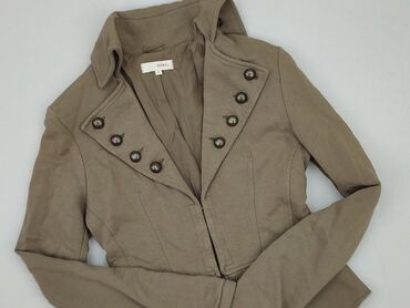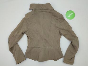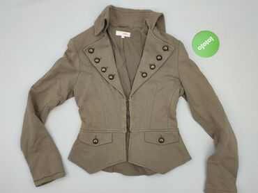 Żakiet damski w stylu militarnym - Kolor: oliwkowy/khaki - Krój: taliowany, z wydłużonym dołem tworzącym lekką baskinkę; pionowe przeszycia modelujące sylwetkę - Kołnierz: stójka - Zapięcie: rząd ...