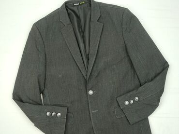 Marynarka męska w prążek - Krój: jednorzędowy, zapinany na 2 guziki - Kolor: jasnoszary z delikatnymi pionowymi prążkami - Rozmiar z metki: 50 L, Drop 8 - Klapy: klasyczne, otwarte (notch lapel) -...