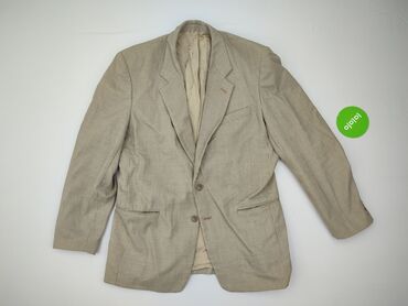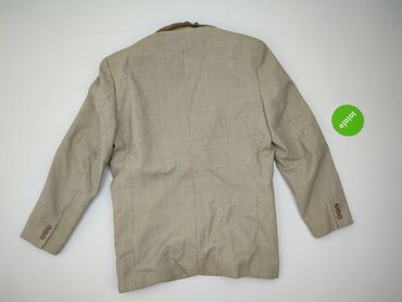 Brązowa marynarka męska z subtelnym wzorem w paski. Posiada klasyczne klapy, długie rękawy oraz zapięcie na guziki. Na przodzie widoczne są kieszenie z patkami oraz jedna kieszonka na piersi. Guzik...