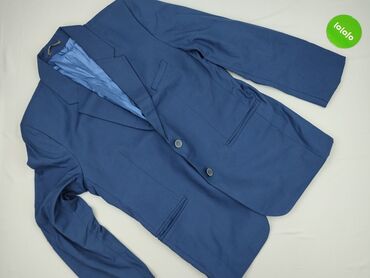 Marynarka męska Summer-cha - Krój: jednorzędowa, 3‑guzikowa - Klapy: klasyczne, otwarte - Materiał: 80% wełna, 20% poliester (na metce) - Podszewka: jasna, gładka - Wzór: szara tkanina w delikatne...