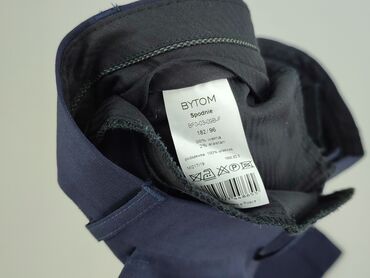 Męskie spodnie garniturowe BYTOM - Kolor: granatowy - Krój: klasyczny, ze szlufkami na pasek - Zapięcie: guzik i zamek - Kieszenie: dwie przednie skośne; dwie tylne wpuszczane zapinane na guziki -...