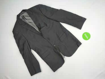 Męska marynarka garniturowa w kolorze szarym - Krój: klasyczny, jednorzędowy - Zapięcie: 2 guziki z przodu - Kołnierz: klapy klasyczne (notch lapel) - Tkanina: drobny, elegancki mikrowzór w paski/...