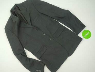 Marynarka męska, grafitowa - Klasyczny fason jednorzędowy na dwa guziki - Proste, wąskie klapy - Dwie kieszenie z patkami z przodu + brustasza - Rękawy z potrójnymi guzikami przy mankietach - Pods...