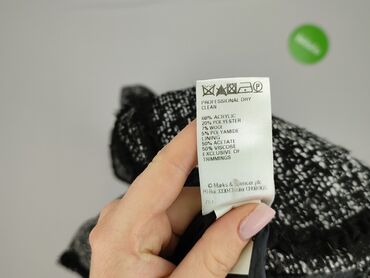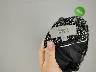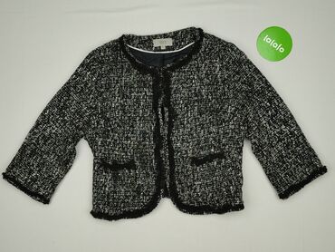 Krótki damski żakiet Marks & Spencer - Model: krótki żakiet z krótkim rękawem - Wzór: drobna krata (czarno‑biała z subtelnymi akcentami) - Kołnierz z klapami, zapięcie wiązane w pasie przez metalo...