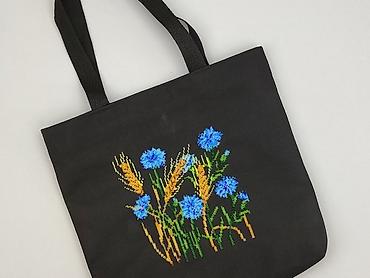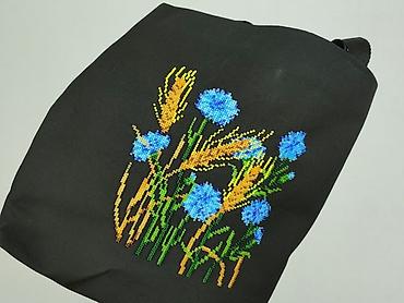 - Kolor: czarny z przodu z detalicznym haftem/koralikowym wzorem chabrów i kłosów zboża w odcieniach niebieskiego, zieleni i złota