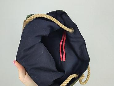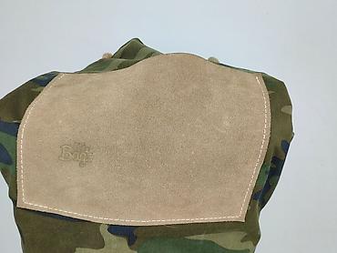 - Materiał: gruba tkanina bawełniana; frontowa kieszeń z jasnobeżowego zamszu (tłoczone logo “Bags”)