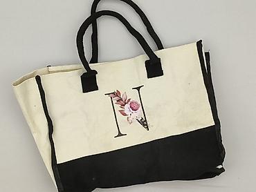 Torba shopper z płótna, czarno-kremowa, z inicjałem „N” i kwiatowym motywem