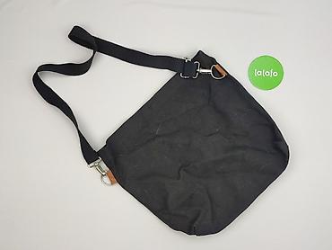 Torebka damska na ramię/crossbody, czarna, materiał + eko-skóra - Klasyczny, półokrągły kształt; lekka i pojemna - Materiał: wytrzymała tkanina w kolorze czarnym z klapą i wzmocnieniami z eko‑skór...