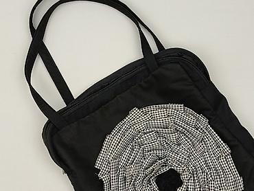 Torebka damska typu worek/tote, czarno‑grafitowa - Model: miejska torba z krótkimi uchwytami do ręki - Konstrukcja 2w1: zewnętrzny korpus z gładkiego, czarnego materiału + wewnętrzny „worek” z mię...Stan: