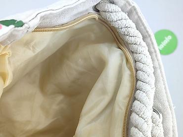 - Rączki: grube, miękkie sznury w kolorze ecru, przewleczone przez metalowe oczka