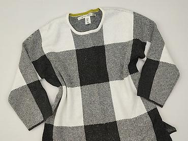 Sweter damski w czarno-białą kratę - Krój: klasyczny, z okrągłym dekoltem - Wzór: duża krata (białe pasy na czarnym tle) - Rękawy: długie, zakończone ściągaczami - Dół: ściągacz dla lepszego dopas...