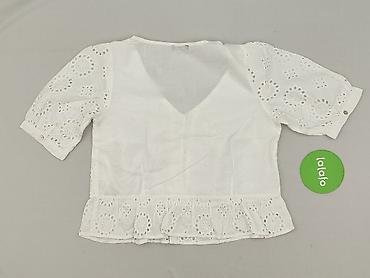 Biała ażurowa bluzka damska z haftem angielskim - Krój: luźny, prosta linia, lekko rozszerzany dół - Dekolt: V - Rękaw: krótki - Zapięcie: guziki z przodu (częściowe) - Tkanina: przewiewna bawełna...