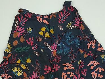 Bluzka damska z krótkim rękawem - Krój: luźny, lekko zaokrąglony dół, dekolt w serek (V-neck) - Przód: efektowny, kontrastowy panel z kwiatowym printem w odcieniach granatu, niebieskiego, bieli i ...