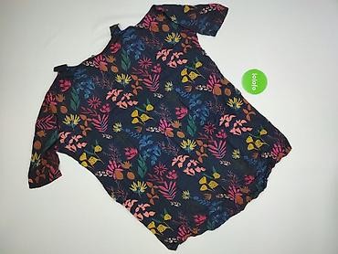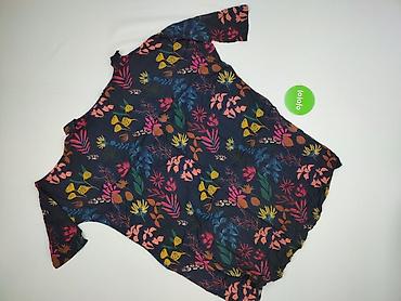 Bluzka damska MUST, rozmiar XL - Kolor bazowy: granatowy - Wzór: duży, roślinny nadruk – liście w odcieniach błękitu, czerni i brązu oraz żółte kwiaty/owoce z czerwonymi akcentami - Krój: luźny, z...