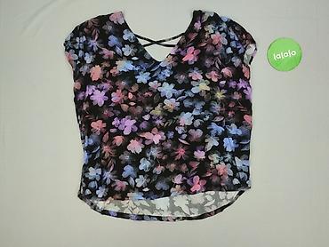 Bluzka damska Medicine, rozmiar S - Krój: luźniejszy top z dekoltem w serek - Rękaw: krótki, lekko bufowany z marszczeniem przy ramieniu - Wzór: kwiatowy print w odcieniach liliowego, fioletu, róż...Stan: