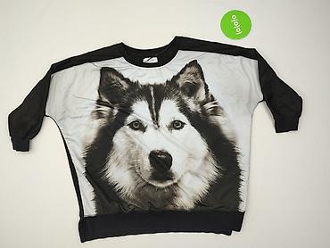 - Kolor: przód biało-szary z nadrukiem dużej głowy psa husky/malamuta; tył i rękawy czarne
