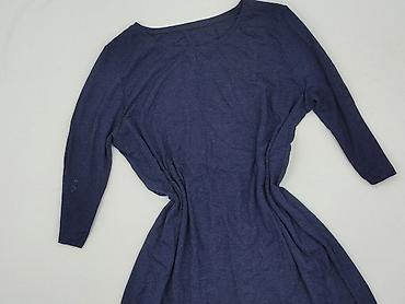 - Fason: luźny, z marszczeniami/zakładkami po bokach i u dołu, długość za kolano, rękaw 3/4, dekolt okrągły