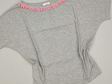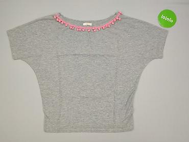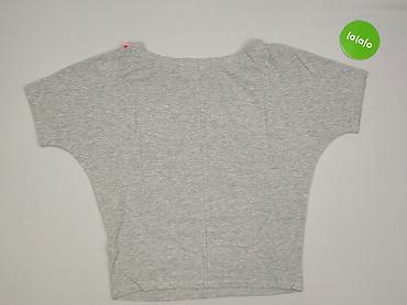 Szara damska bluzka z krótkim rękawem - Krój: luźny, z obniżoną linią ramion; delikatnie dłuższy tył - Dekolt: okrągły - Rękawy: do łokcia - Kolor: jasny szary melanż - Rozmiar z metki: S - Materi...
