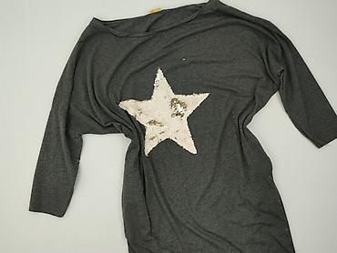 Szara damska tunika/sweter z długim rękawem - Kolor: melanż szary - Fason: tunikowy, lekko dopasowany, za biodra - Rękawy: długie, zakończone ściągaczem - Dekolt: okrągły - Ozdoby: aplikacja gwiaz...