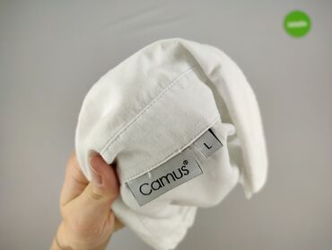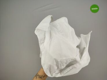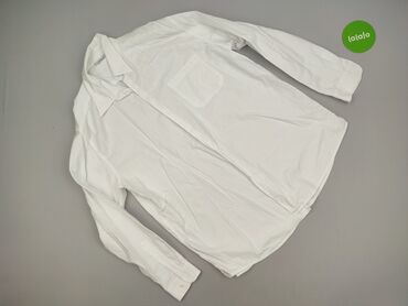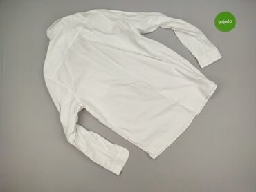 Biała koszula męska z długim rękawem, rozmiar M. - Klasyczny kołnierzyk, zapięcie na guziki na całej długości - Mankiety na guziki - Krój z zaokrąglonym dołem - Materiał: 100% poliester (informacj...