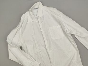 Biała koszula męska z długim rękawem - Klasyczny krój z kołnierzykiem i zapięciem na guziki na całej długości. - Długie rękawy zakończone szerokimi mankietami na guziki. - Gładka, jednolita tkanin...