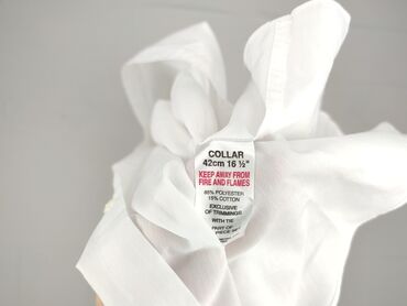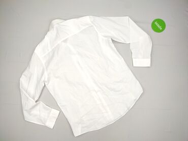 Biała koszula męska z długim rękawem, rozmiar M. - Klasyczny kołnierzyk, zapięcie na guziki na całej długości - Mankiety na guziki - Krój z zaokrąglonym dołem - Materiał: 100% poliester (informacj...
