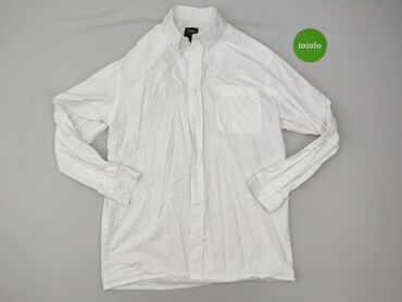 Biała koszula męska H&M L.O.G.G. - Krój: Regular - Rozmiar z metki: S (EUR S / US S / CA P / CN 170/92A / MX CH) - Materiał: 100% bawełna (widoczna naturalna, lekko „ziarnista” faktura tkaniny) - ...